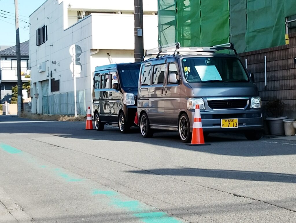 駐車禁止エリアにて施工のため、道路使用許可を取って仕事してます😊